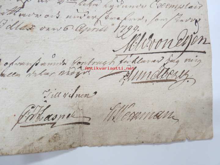 allekirjoitukset, todistavat C.J. Laspel?? & H. Weckman, vesileimapaperi.