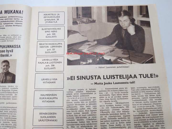 | Saatavilla | 1 kpl | | Julkaisuvuosi | 1964 | | Sivuja | 32 | | Kunto | K2 | | Sidonta/painoasu | Lehti | | Kielet | Suomi |
