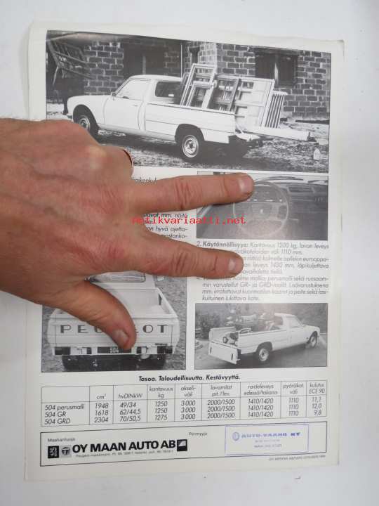 Peugeot 504 Avolava 1984 -myyntiesite / sales brochure
