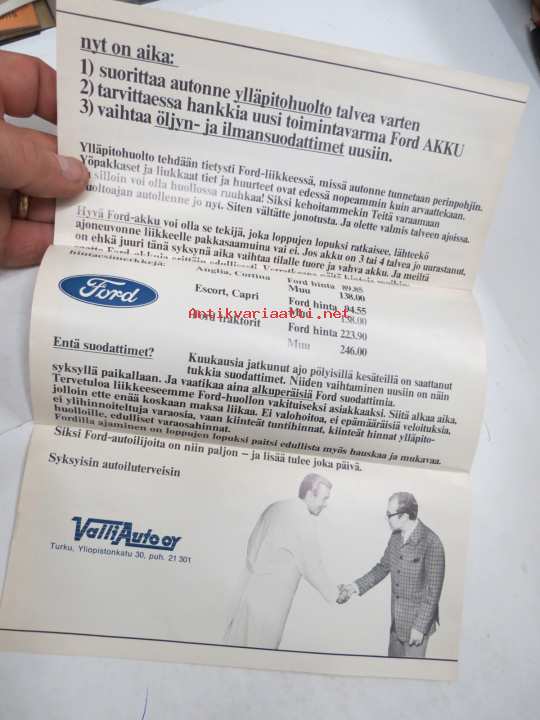 Valli-Auto Oy huoltotarjous -myyntiesite / sales brochure