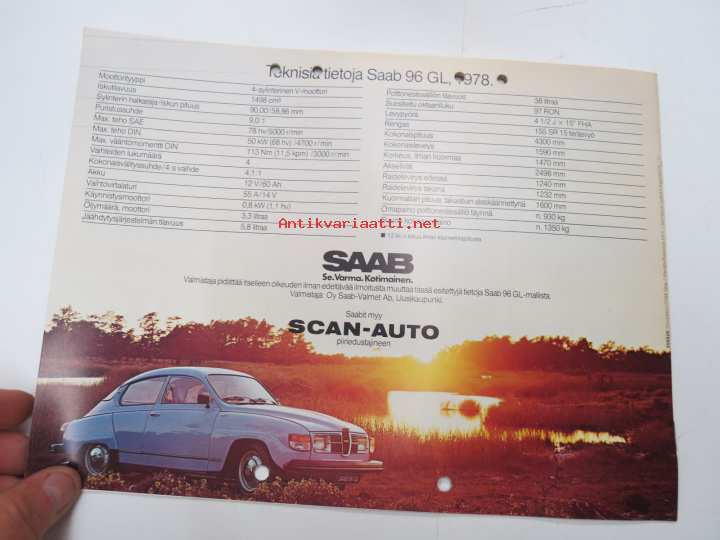 Saab 96 GL 1978 -myyntiesite / sales brochure