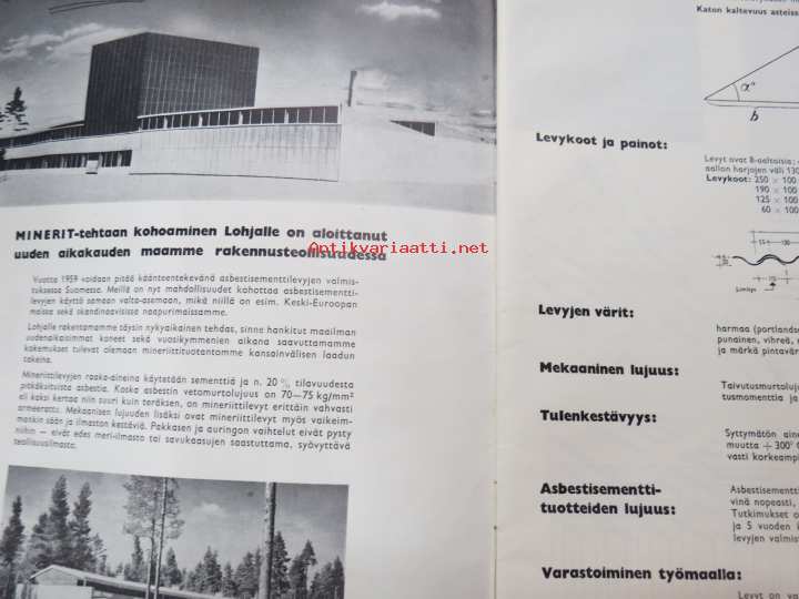 Minerit aaltokattolevy -esittelee tuotteen, käyttökohteet, tekniset ominaisuudet, työtavat, työkalut ja tarvikkeet -myyntiesite -brochure