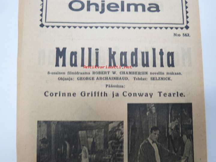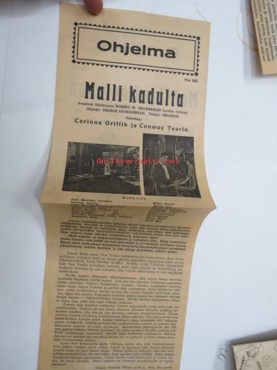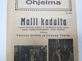 Malli kadulta -elokuvan (mykkäfilmi) käsiohjelma 1925, pääosissa Corinne Griffith, Conway Tearle, Elliot Dexter, Wally Wan, Hobarth Bosworth -movie program