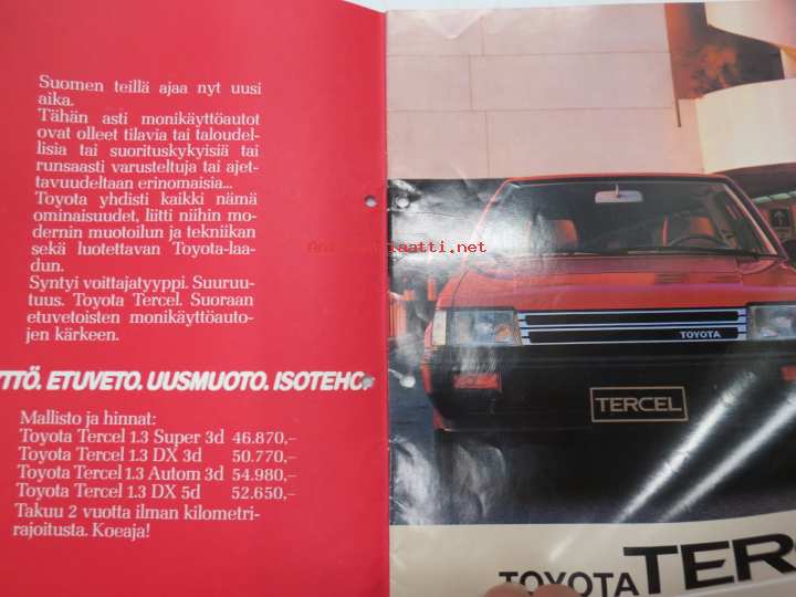 Toyota Tercel 1983 -myyntiesite / sales brochure