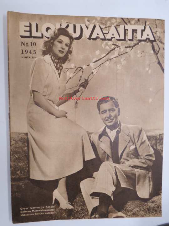 Elokuva-Aitta 1945 nr 10, kansikuva Greer Carson & Ronald Colman, Kyllikki Väre & Unto Salminen, Norma Shearer, Hollywoodin pukupiirtäjiä, Paulette Goddard, ym.
