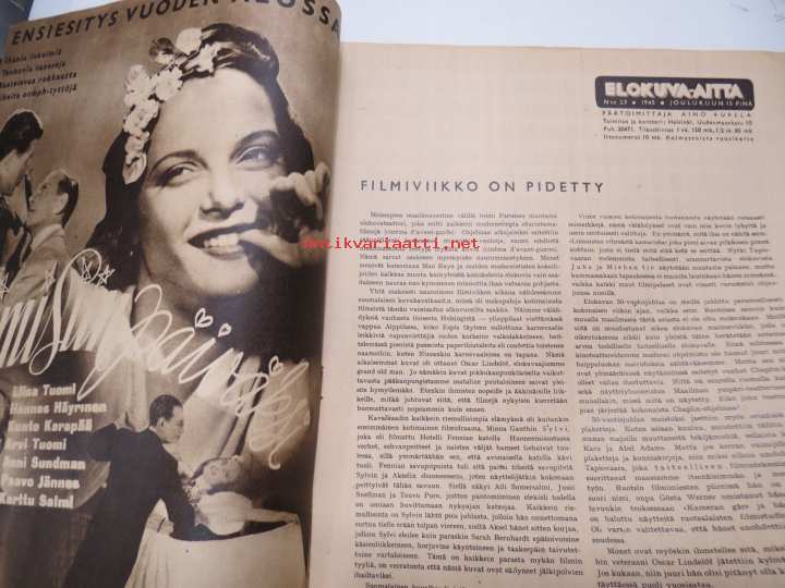 Elokuva-Aitta 1945 nr 23, kansikuva Lynn Merrick, Filminäyttely - suomalaisen elokuvan historiaa mm. Eric Tigerstedt, Olaf Fönss, Mekan salaisuudet filmattuna, ym.