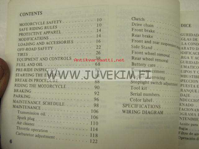 Honda MBX125R owner´s manual -käyttöohjekirja englanniksi