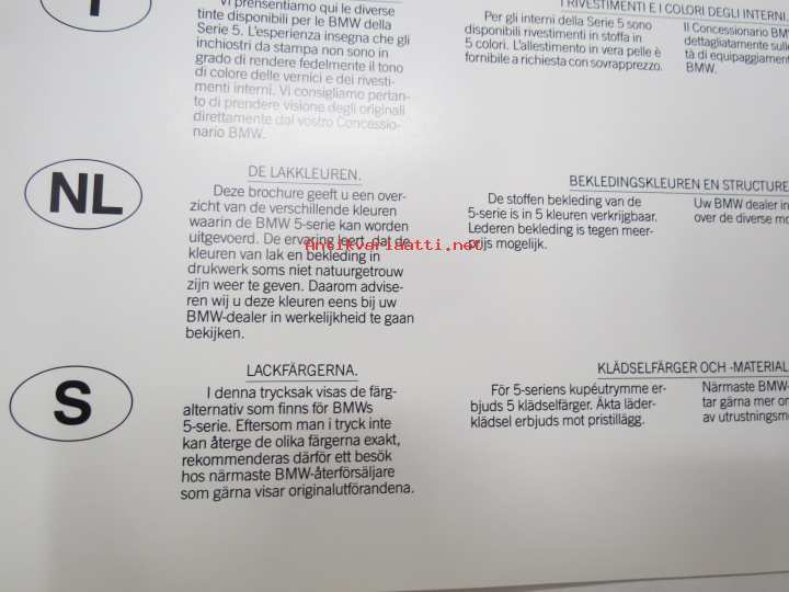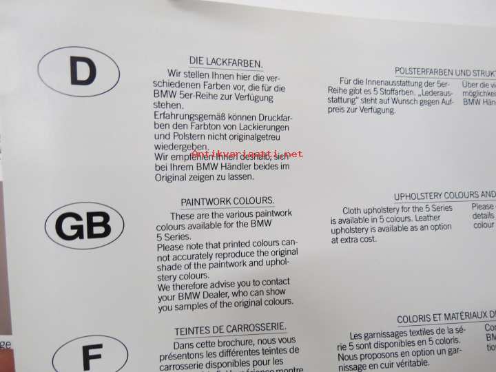 BMW 520i, 524td, 525i, 530i, 535i 1988 Farben Polster - Colours and upholstery - Färger och klädslar -värimallit & sisustus