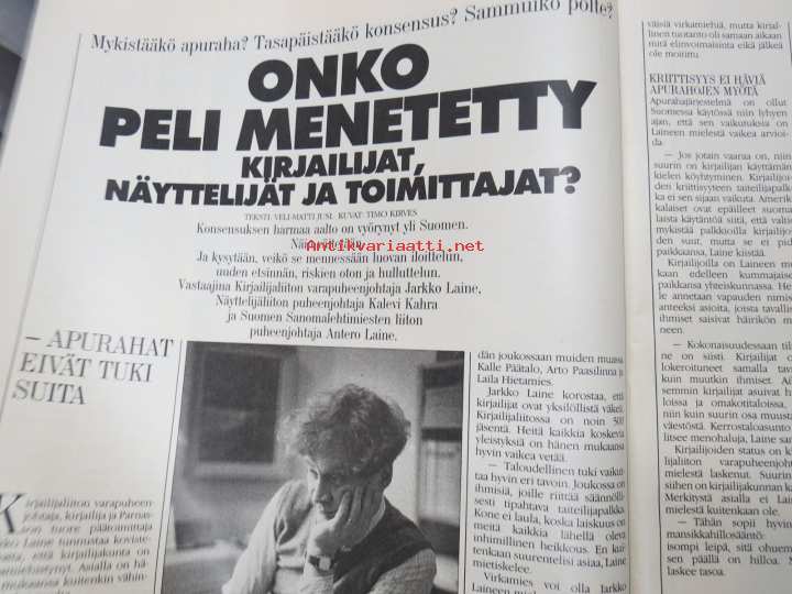 | Saatavilla | 2 kpl | | Julkaisuvuosi | 1987 | | Sivuja | 96 | | Kunto | K3 | | Sidonta/painoasu | Lehti | | Kielet | Suomi |