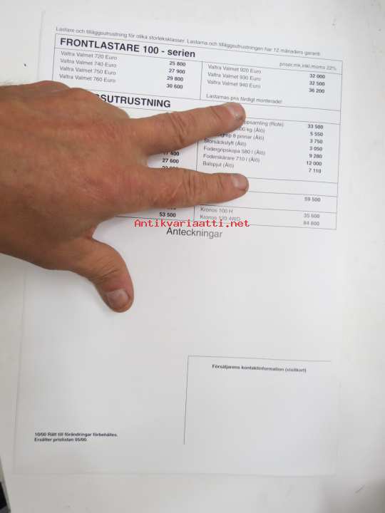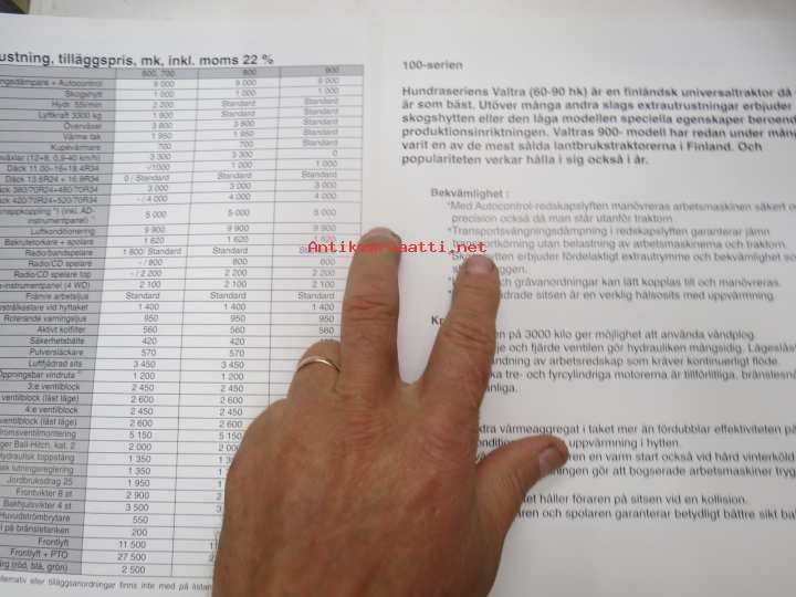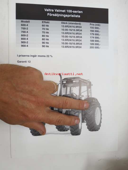 Valtra Valmet 100-serien Försäljningsprislista -hinnasto ruotsiksi