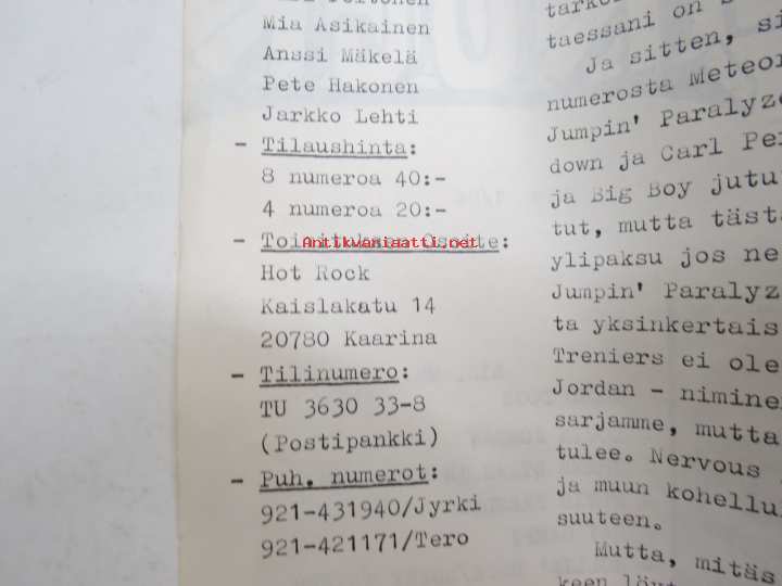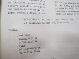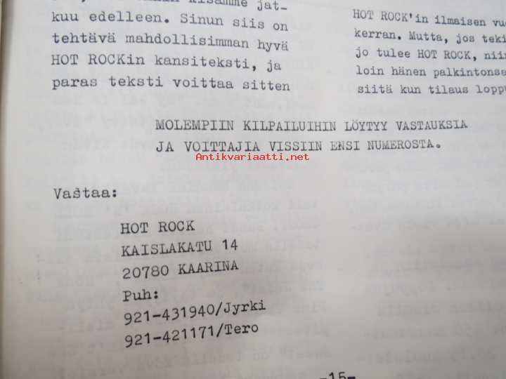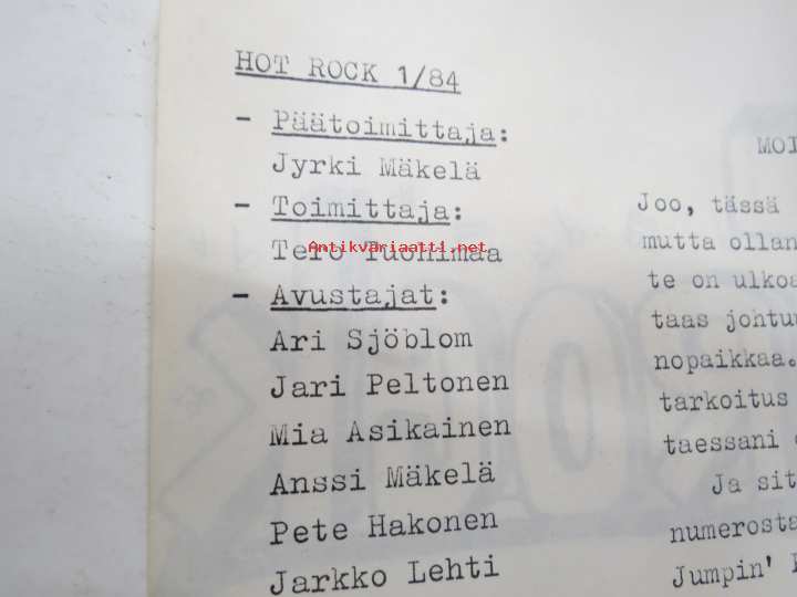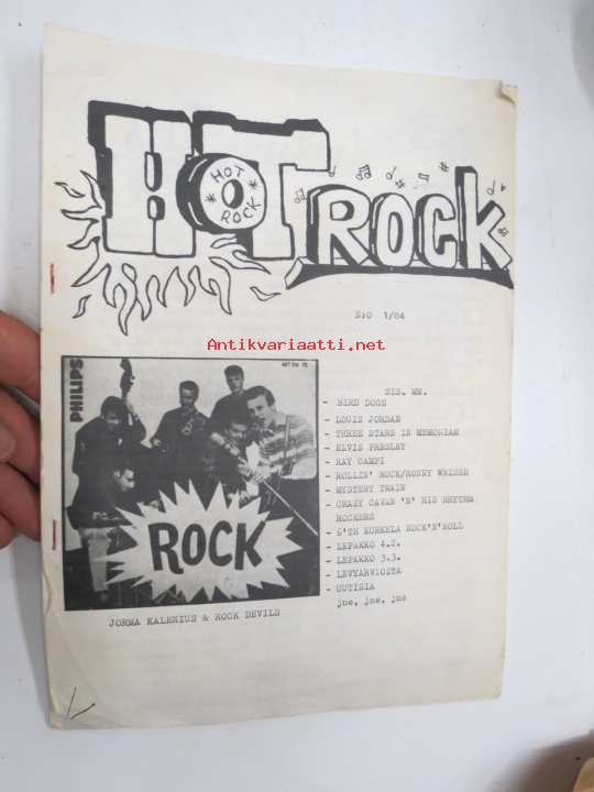 Hot Rock 1984 nr 1 -omakustanteinen rock-musiikin - ja alakulttuurin lehti, ilm. Kaarinassa, toimittajina ja avustajina; Jyrki Mäkelä, Tero Tuohimaa, Ari Sjöblom