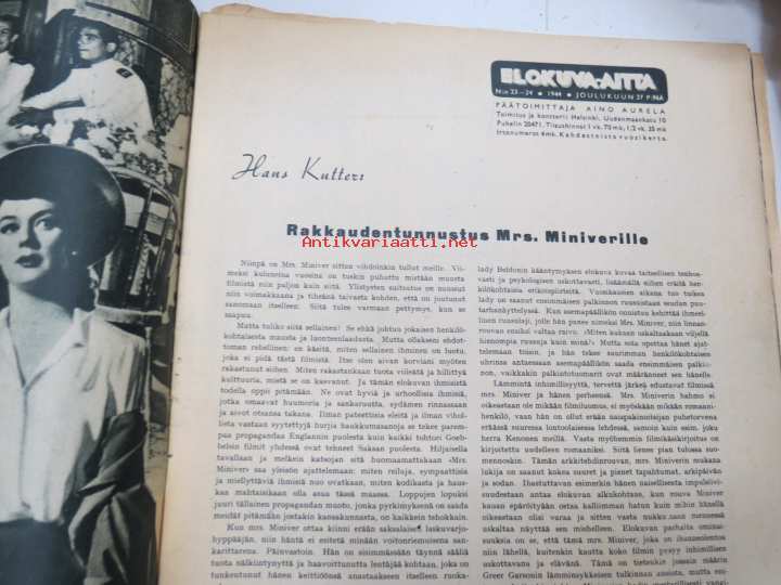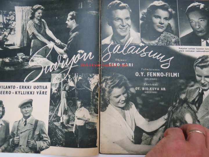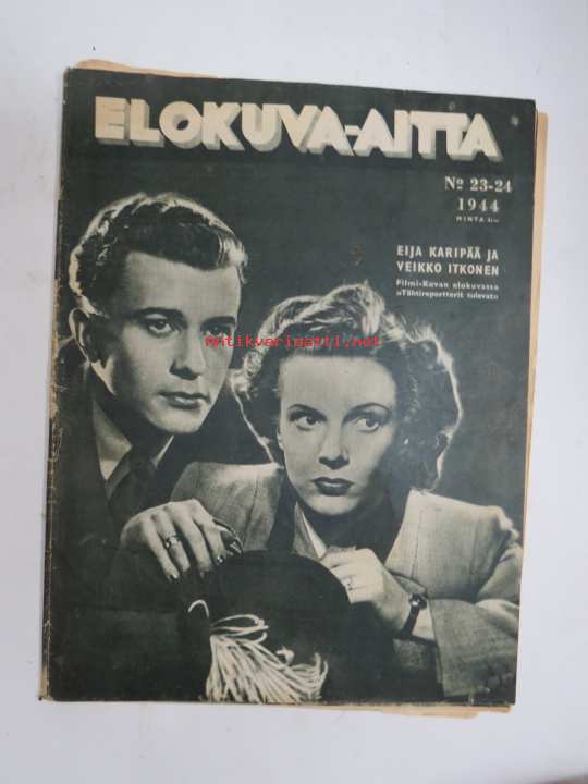Elokuva-Aitta 1944 nr 23-24, Kansikuva Eija Karipää & Veikko ItkonenSuviyön salaisuus, Annikki Arni, Ristikon varjossa, Musta Hurmio, Suomisen Olli rakastuu, ym.