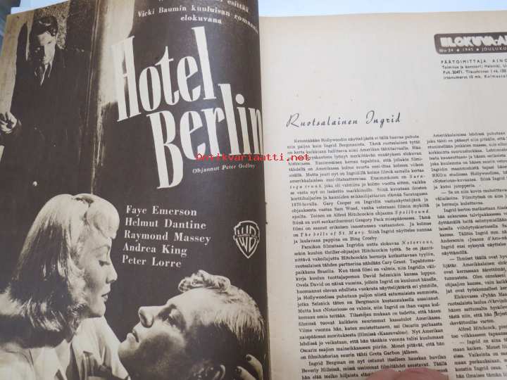 Elokuva-Aitta 1945 nr 24 Kansikuva Margaretta Scott & James Mason, Ruotsalainen Ingf´rid Bergman, Marcel Carné, Emma Väänänen & Eino Heino, Henry Fonda, ym.