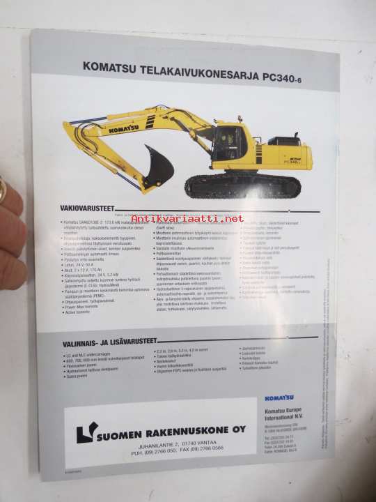 Komatsu PC340-6 telakaivukonesarja -myyntiesite / excavator sales brochure