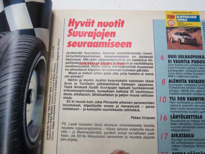 Jyväskylän Suurajot 1993 Tuulilasi / Apu Katsojan opas