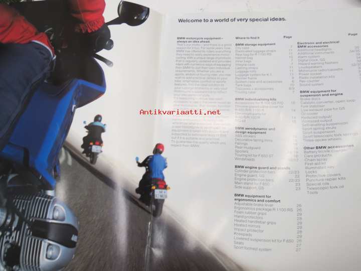 BMW Motorcycle Equipment 1997 -moottoripyörien varusteiden ja tarvikkeiden myyntiesite englanniksi