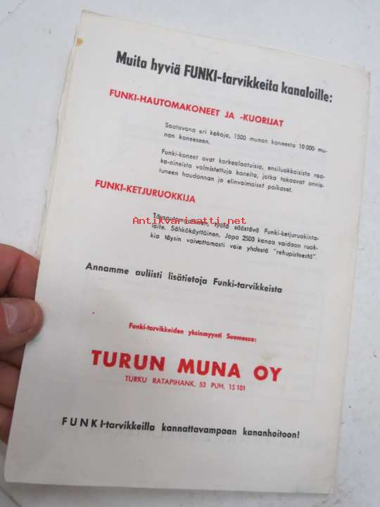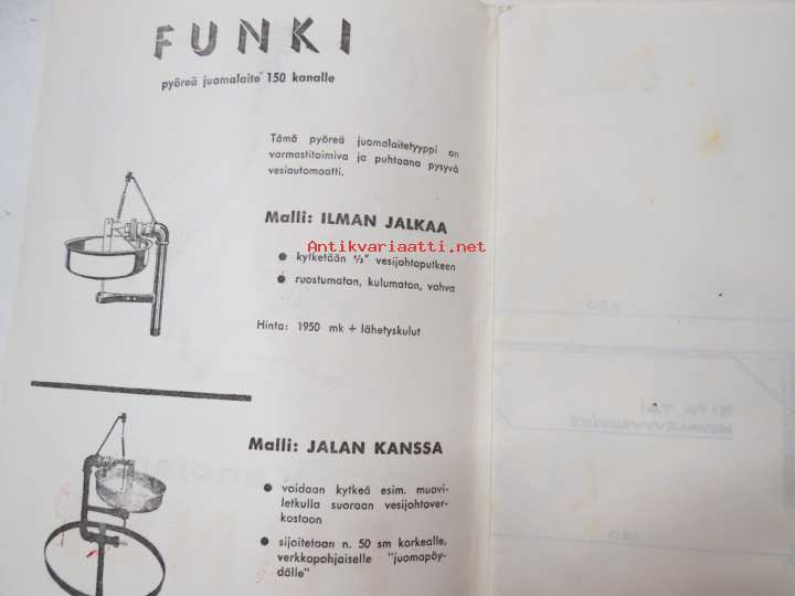 Kanojen Funki juomalaitteet, kivennäiskaukalot, kennopesät, orret - Turun Muna Oy -myyntiesite / sales brochure