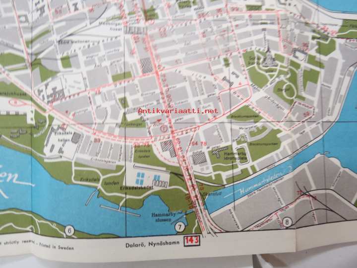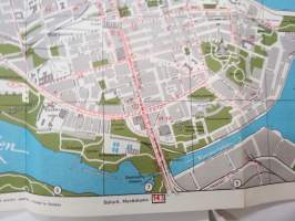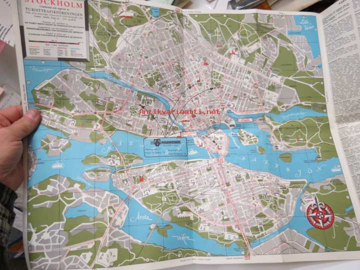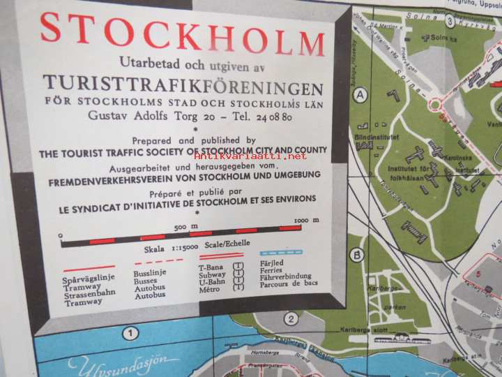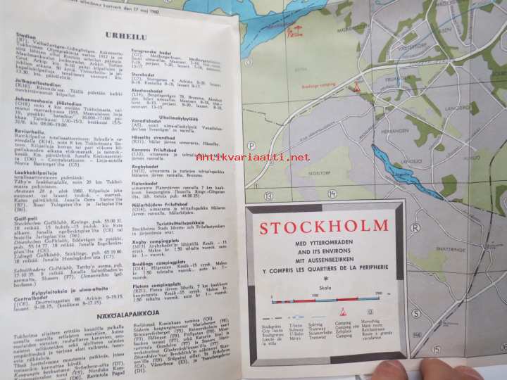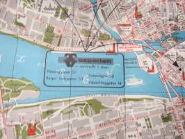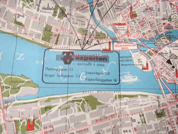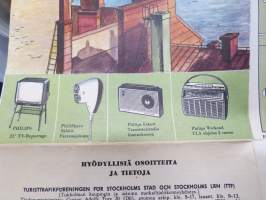 TV-Experten - kaikkialla kaupungilla - Tukholman opas / kartta, kodinkoneliikkeen opas / kartta Suomesta tuleville turisteille 1950-luvulta