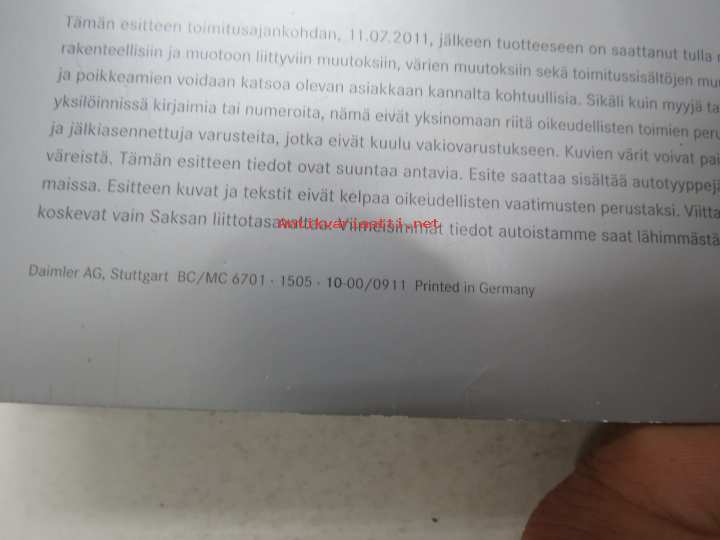 Mercedes-Benz B-sarja -myyntiesite / sales brochure