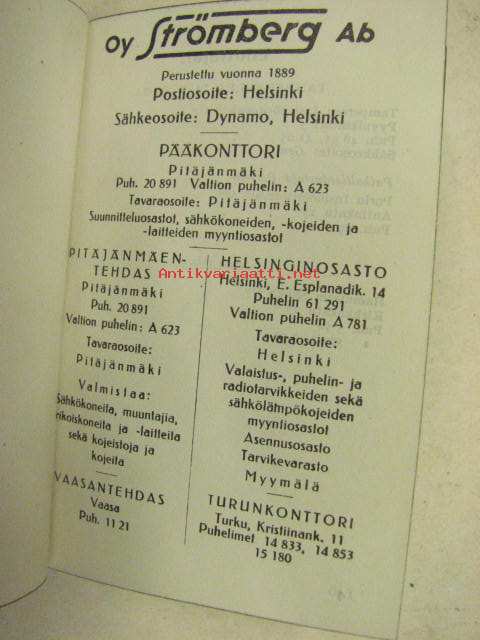 Oy Strömberg Ab, 19457 x 11 cm kirja.