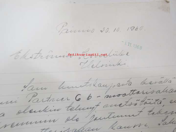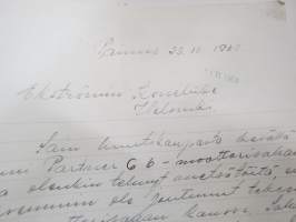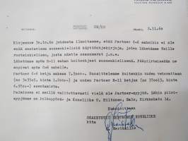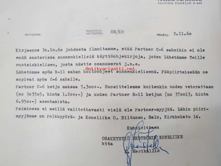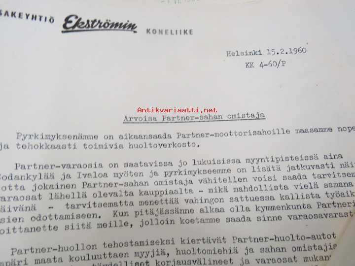 Partner moottorisaha, asiakkaan (Paimio) kirje C-6 sahan varaosa-asioissa maahantuojalle sekä vastaukset