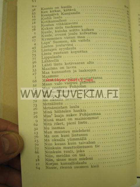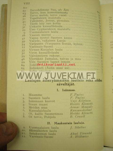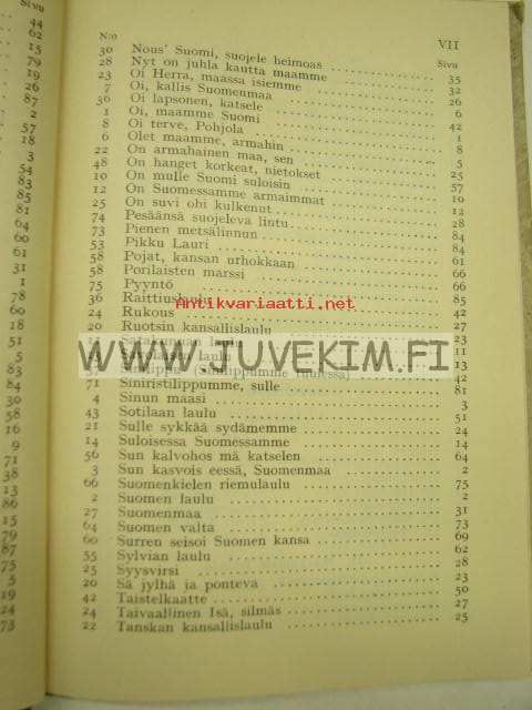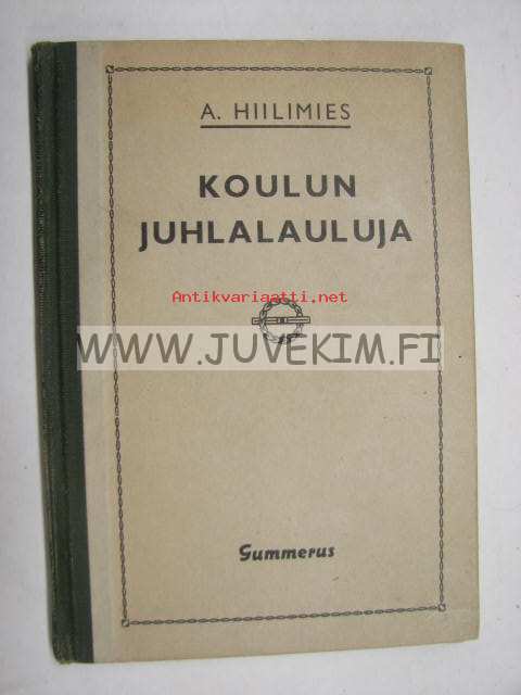 | Saatavilla | 1 kpl | | Julkaisuvuosi | 1937 | | Sivuja | 88 | | Painos | 1. | | Kunto | K3 | | Sidonta/painoasu | Sidottu (kovak.) | | Kielet | Suomi |