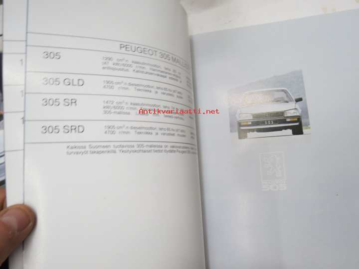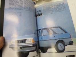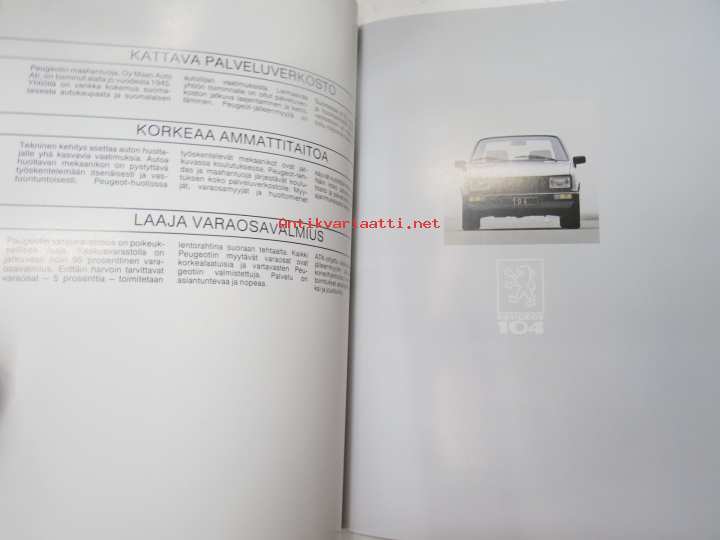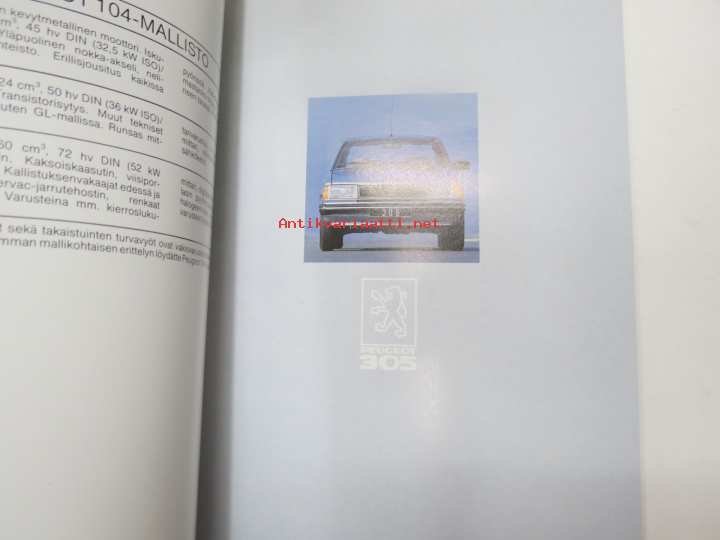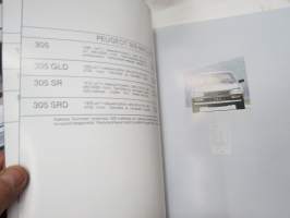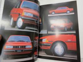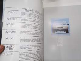 Peugeot mallisto 1983 -myyntiesite / -kirja, tehtaan ja tekniikan esittely, mallit 104, 305, 505, 604, 504 Coupe & Cabroilet, 305 Break, 505 Break