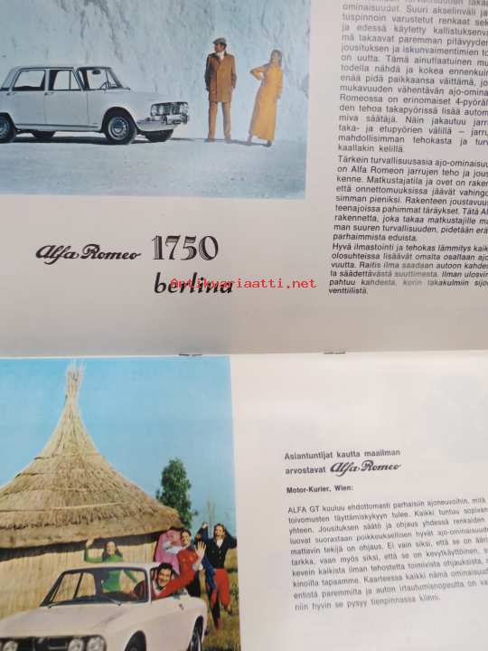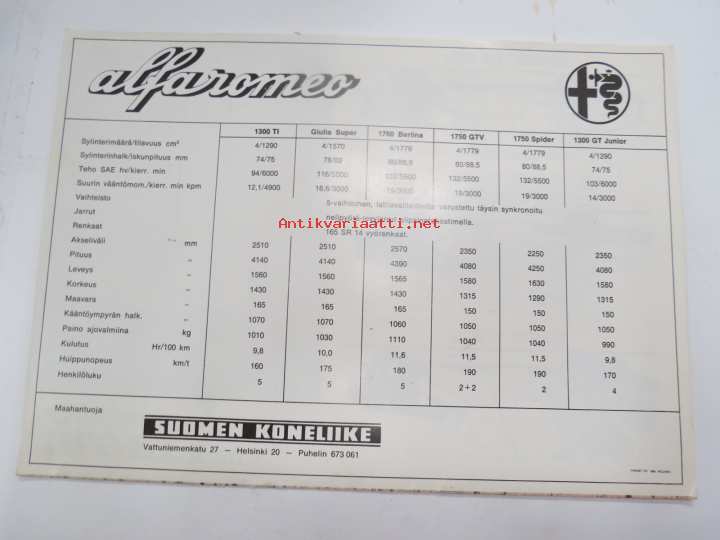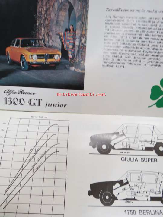 Alfa Romeo 1300 TI, Giulia Super, 1750 Berlina, 1750 GT Veloce, 1300 GT Junior, 1750 Spider -myyntiesite / sales brochure
