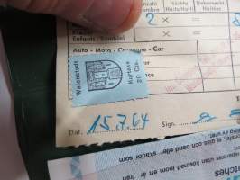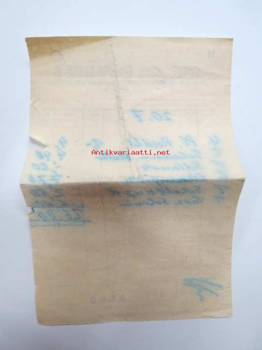 9 x 15 cm, kuitin kirjoitusvuosi käy ilmi muista matkapapereista (ei tule tämän mukana).