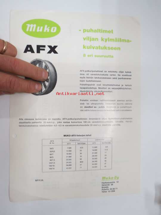 Muko AFX -puhaltimet viljan kylmäilmakuivatukseen -myyntiesite / sales brochure