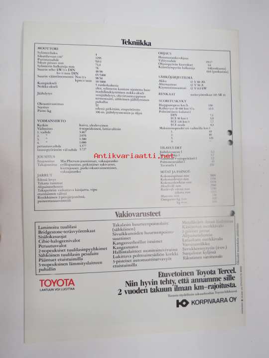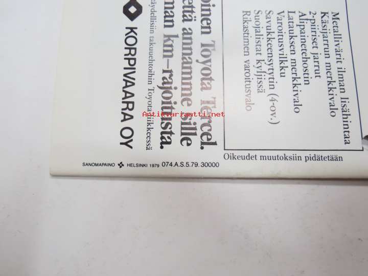 Toyota Tercel 1979 -myyntiesite / sales brochure