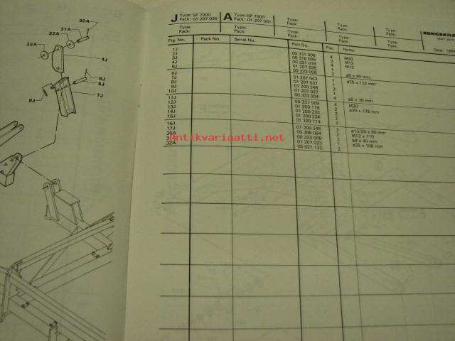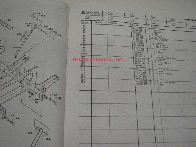 Kongskilde SP7000 -spare parts list varaosaluettelo englanniksi