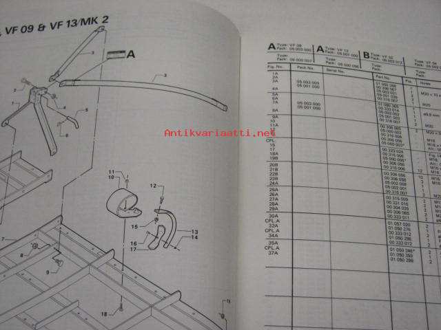 Kongskilde VF09 & VF13/Mk 1,2,3 spare parts list -varaosaluettelo englanniksi