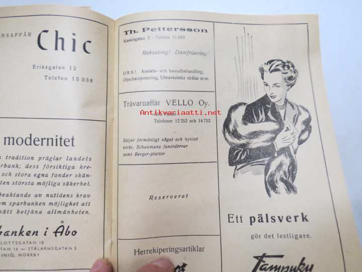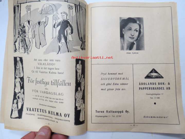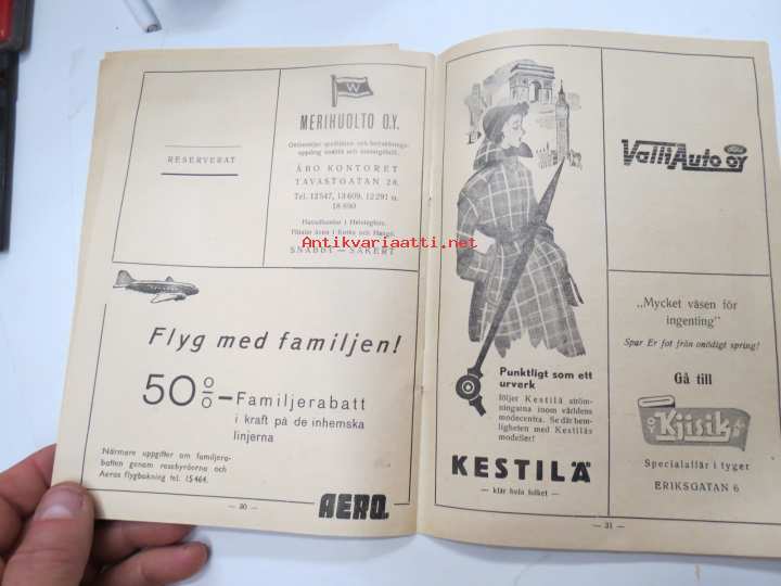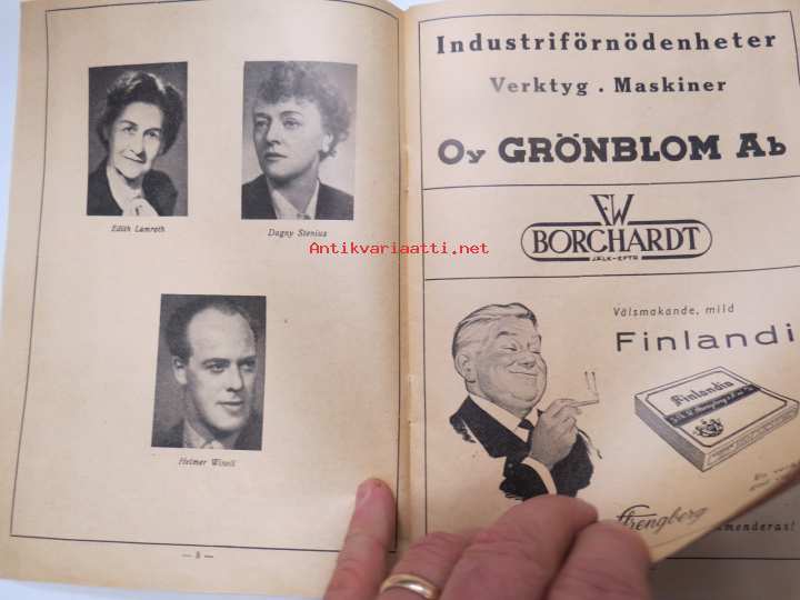 | Saatavilla | 1 kpl | | Julkaisuvuosi | 1951 | | Sivuja | 36 | | Kunto | K3 | | Sidonta/painoasu | Nidottu (pehmeäk.) | | Kielet | Ruotsi |