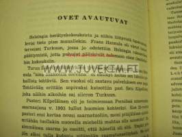 | Saatavilla | 1 kpl | | Julkaisuvuosi | 1953 | | Sivuja | 182 | | Painos | 1. | | Kunto | K2 | | Kulunut | | Sidonta/painoasu | Nidottu (pehmeäk.) | | Kielet | Suomi |