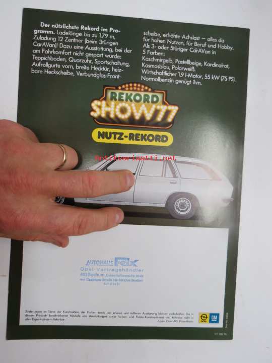 Opel Rekord 1977 -myyntiesite / sales brochure