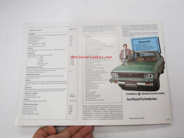 Datsun 160 J Violet -myyntiesite / sales brochure