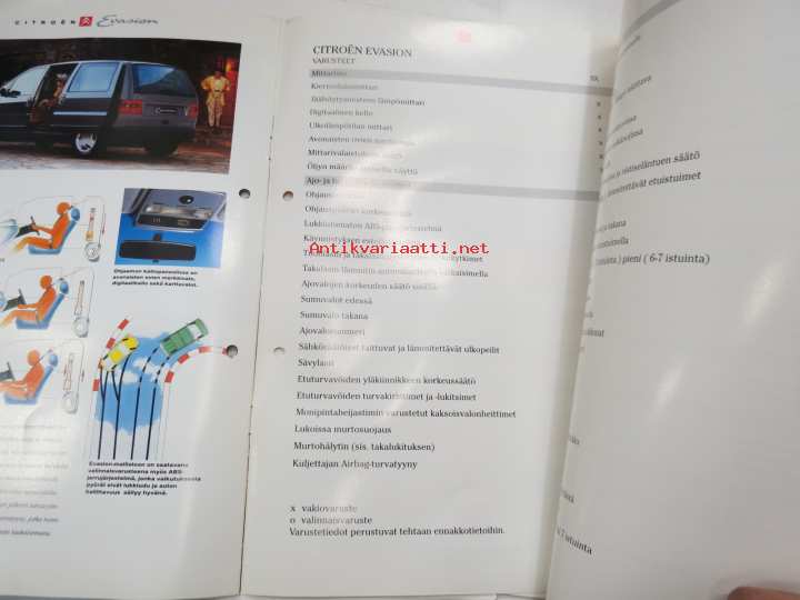 Citroën Evasion 1995 -myyntiesite / sales brochure