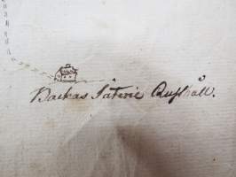 Kartta, Sauvo, arviolta 1700-1800 lukujen vaihteen kartta, käsinpiirretty, mm. Backas Säteri Rusthåll, Kappelinniittu, Backas Skog, Kappelinketo, Urböle dragonaug...