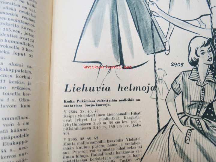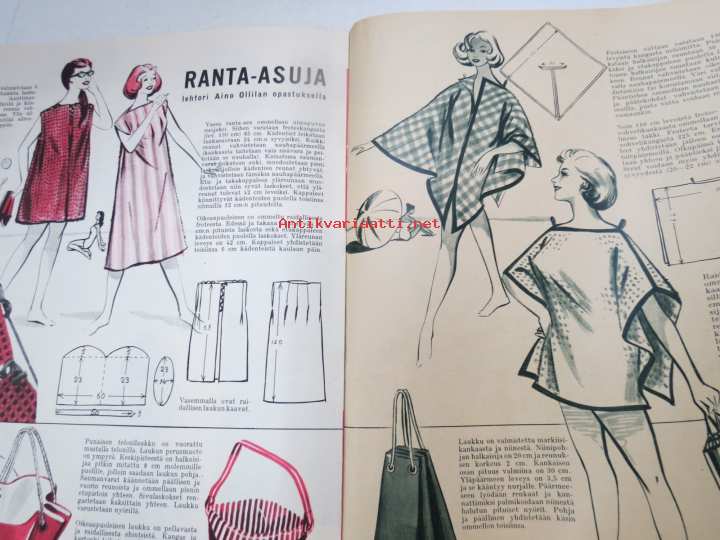 Kodin pukimet 1957 nr 2 -käsityölehti, Silo Sirpa & Pirkko, Kankaiden viimeistelystä, Kesäkoruja, Hyvät liivit, Ranta-asuja, Nukkelan pukuhuolia, ym.