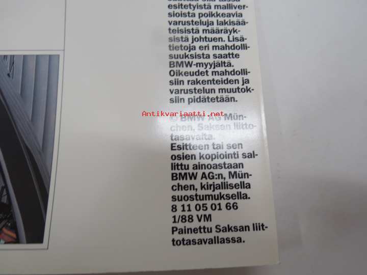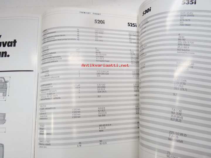 BMW 520i, 525i, 530i, 535i 1988 -myyntiesite / sales brochure in finnish