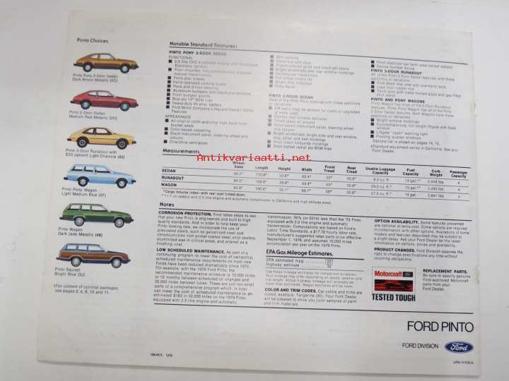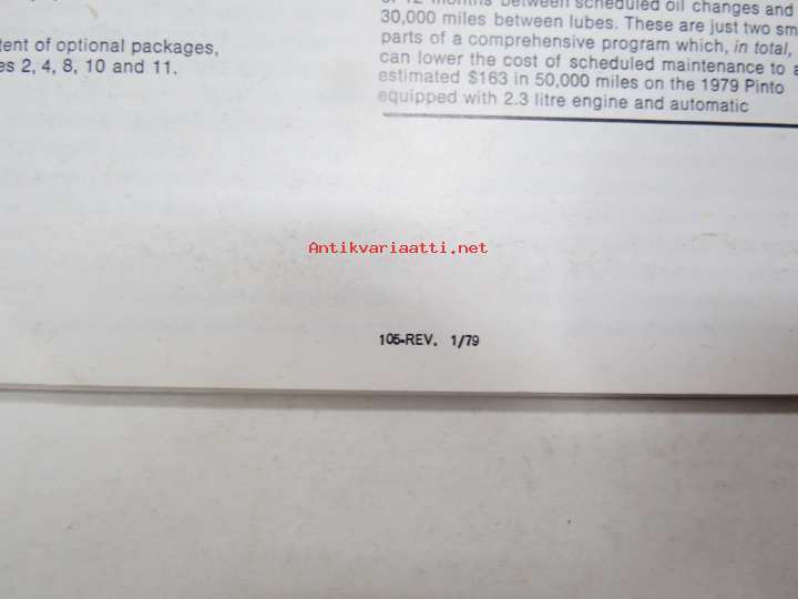 Ford Pinto 1979 -myyntiesite / sales brochure