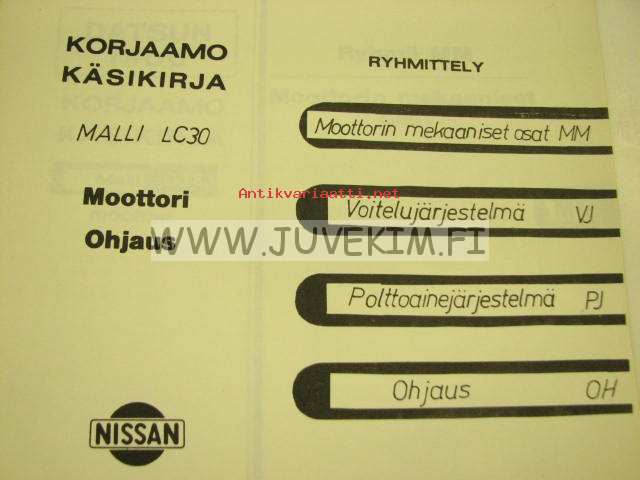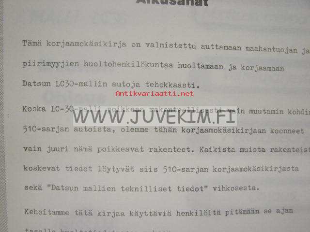 Datsun korjaamokäsikirja Malli LC 30 Moottori & ohjaus