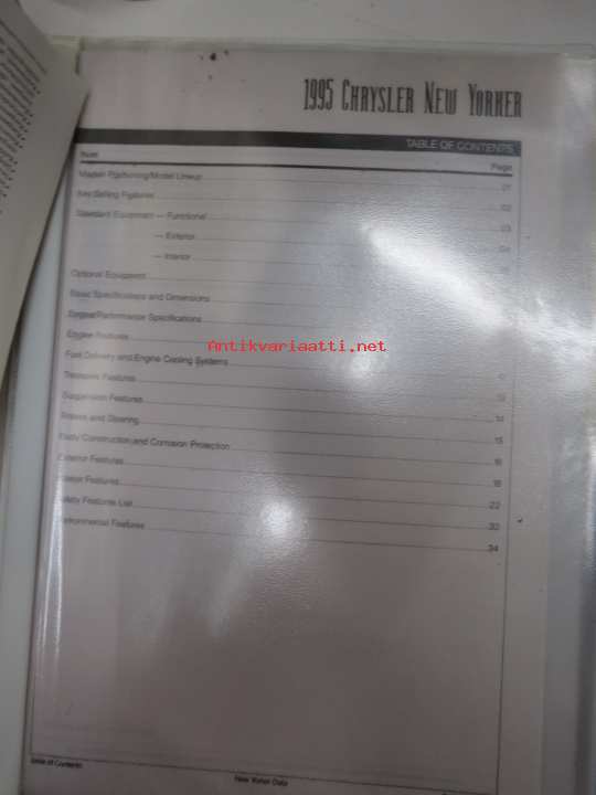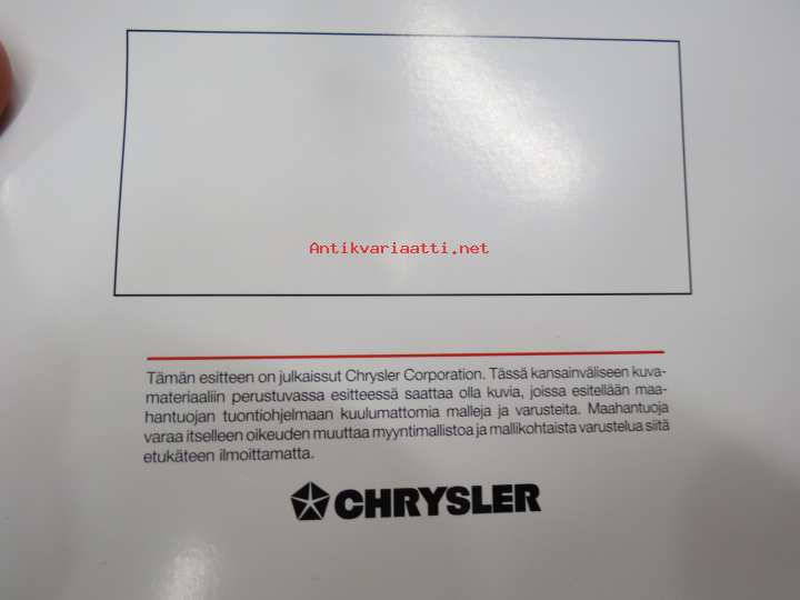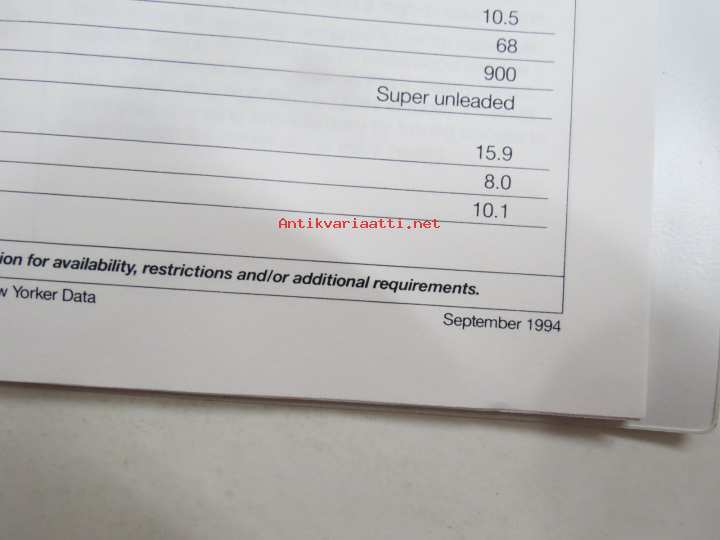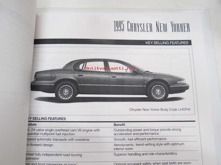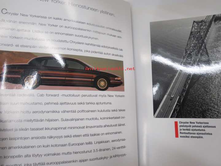 Chrysler New Yorker 1995, suomenkielinen myyntiesite, maahantuojan lanseerauskansio