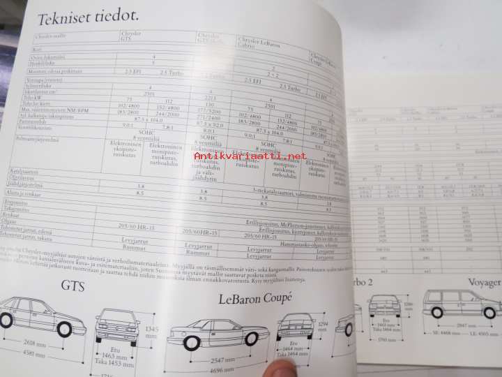 Chrysler GTS, LeBaron Coupé / Cabrio, Voyager, GS Turbo -myyntiesite