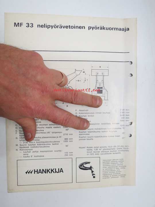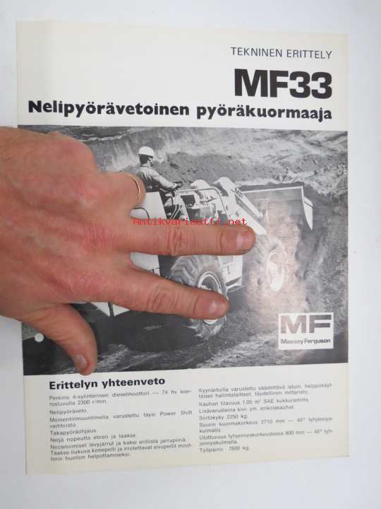 Massey-Ferguson MF33 pyöräkuormaaja -tekninen erittely / myyntiesite - technical features / sales brochure