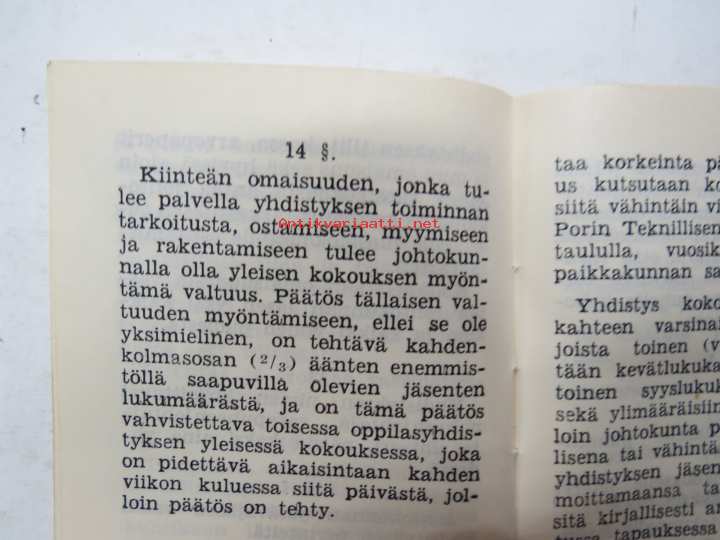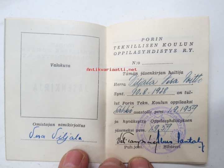 Porin Teknillinen Koulu Oppilasyhdistys ry, Jäsenkirja, V. Viljala, 1959