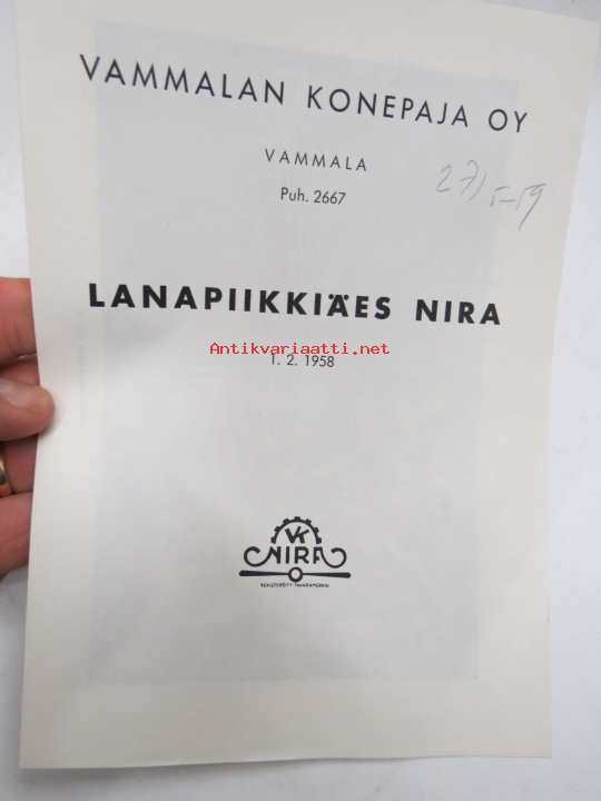 Vammalan Konepaja - Nira Lanapiikkiäes 1958 -myyntiesite