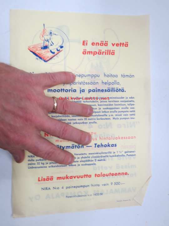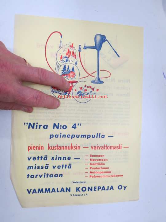 Vammalan Konepaja - Nira pihakaivopumppu Nira nr 4 1959 -myyntiesite