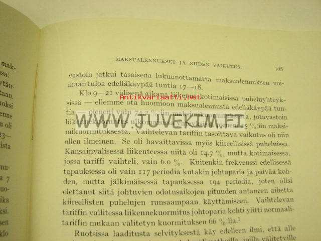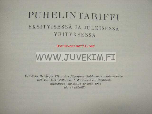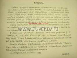 | Saatavilla | 1 kpl | | Julkaisuvuosi | 1934 | | Sivuja | 211 | | Painos | 1. | | Kunto | K3 | | Sidonta/painoasu | Nidottu (pehmeäk.) | | Kielet | Suomi |